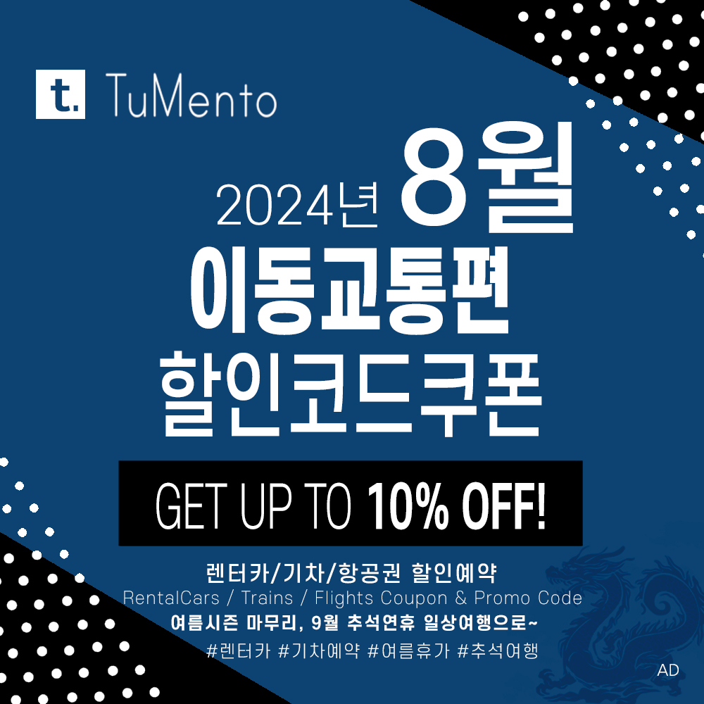 투멘토 여행정보 할인쿠폰 및 할인코드 업데이트는 계속 됩니다.